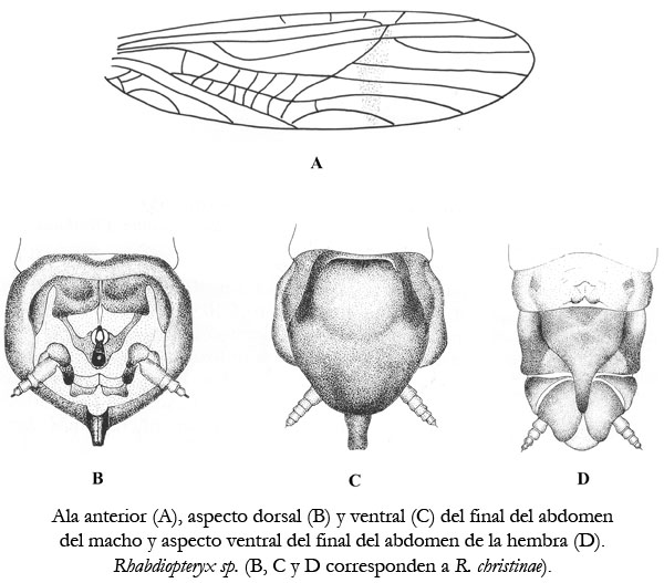Adultos: Coloración general oscura. Alas en reposo se sobreponen de forma plana sobre el abdomen. Ala anterior con 2 o más venaciones transversales entre C y Sc. Como es general en Taeniopterygidae, el ala anterior suele presentar una zona transversal más pigmentada (claramente visible en ejemplares vivos, más difícil de observar en material conservado en alcohol) y los artejos de los tarsos son de longitud similar. Placa subgenital del macho muy desarrollada, sobrepasa el extremo del abdomen, sin vesícula (lamela) ventral. El 10º terguito del macho está dividido en dos partes, por medio de una hendidura, que se continúan o no en procesos triangulares y apuntados. Como en Brachyptera, el epiprocto, que constituye el aparato copulador, está fuertemente desarrollado y provisto de un saco esclerotizado incurvado. Cercos con varios artejos en ambos sexos, en los machos provistos de un proceso basal. En la hembra la apertura genital se abre centralmente en el margen posterior del 8º urosterno; y el 9º urosterno (placa postgenital) está muy desarrollado y alcanza en su extremo distal la base de los paraproctos. Ninfas: Coloración dorsal, generalmente, similar a la ventral. Sin traqueobranquias coxales ni salientes tergales en los metámeros abdominales. 9º esternito abdominal alargado y paraproctos de los machos cortos y romos. Base de los cercos sin sedas largas en la parte dorsal. Otros caracteres que comparten con otros miembros de la familia Taeniopterygidae son: patas relativamente largas y delgadas, esbozos alares divergentes respecto al eje longitudinal del cuerpo, abdomen subcilíndrico y grueso, con los esternitos de los 7-8 primeros metámeros membranosos, los artejos de los tarsos en tamaño creciente progresivamente desde el primero al tercero.